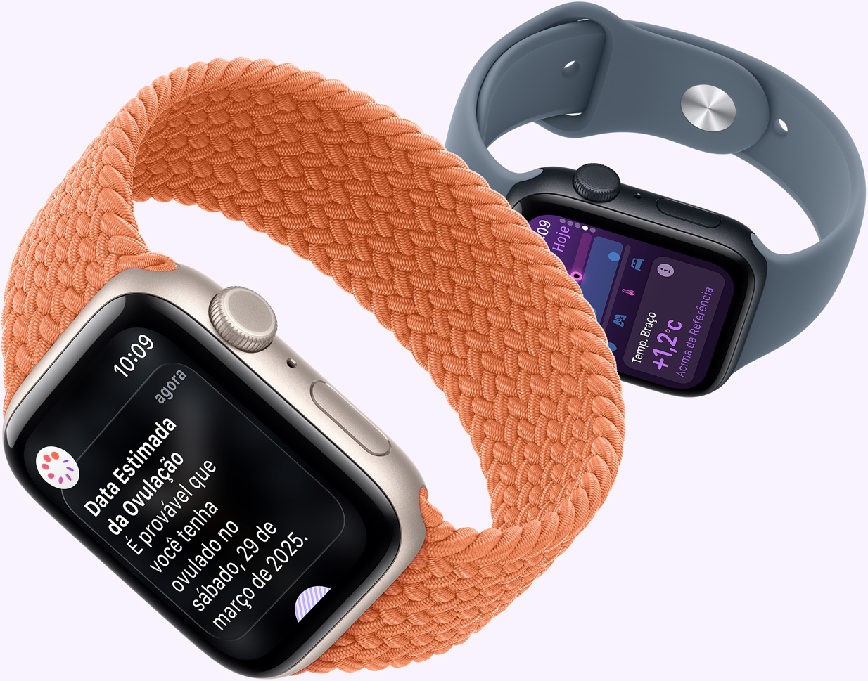 O SE 3 tem sensores avançados que podem medir a temperatura do pulso enquanto você dorme1. O app Acompanhamento de Ciclo usa esses dados para dar uma estimativa das ovulações anteriores, o que pode ser útil para o planejamento familiar9.