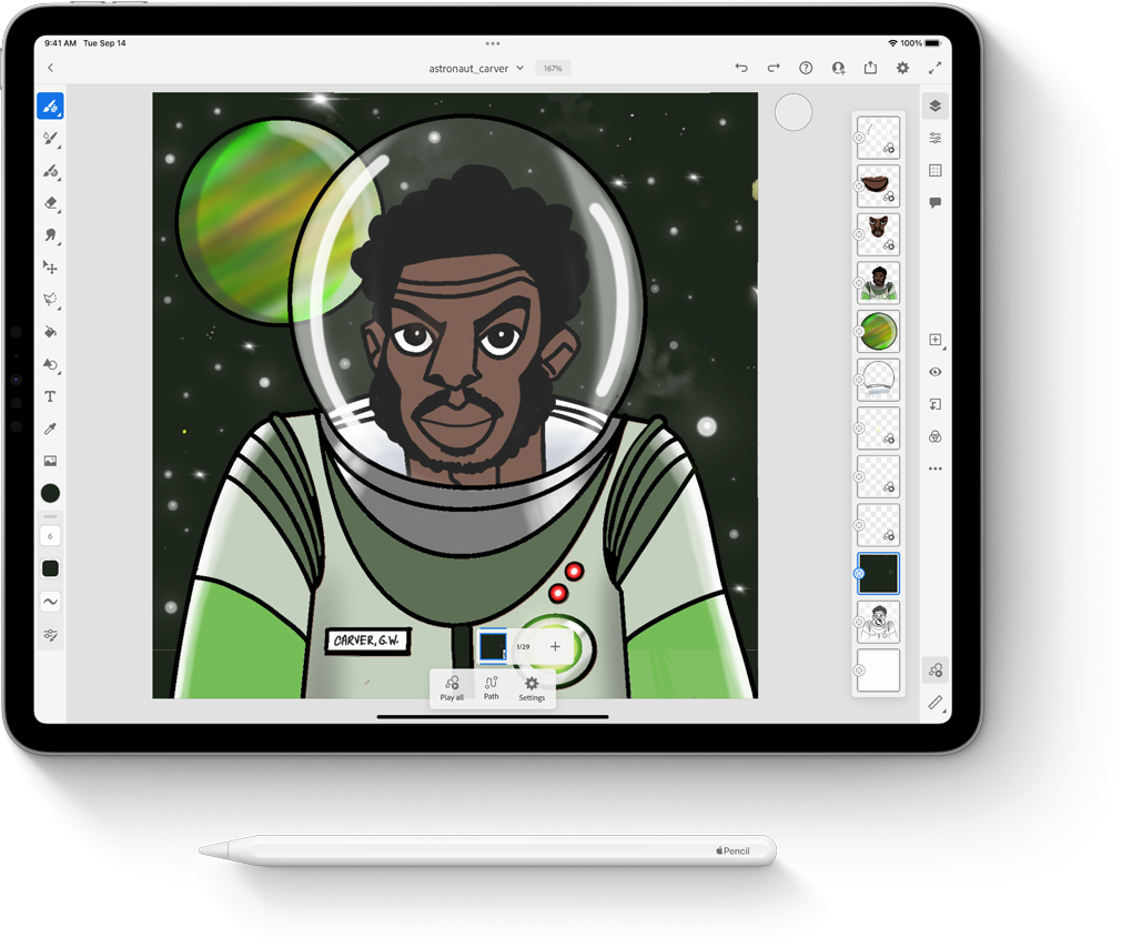“Com o iPad, artistas e criativos podem usar a arte digital e a animação para se divertir, explorar e encontrar a própria voz.”