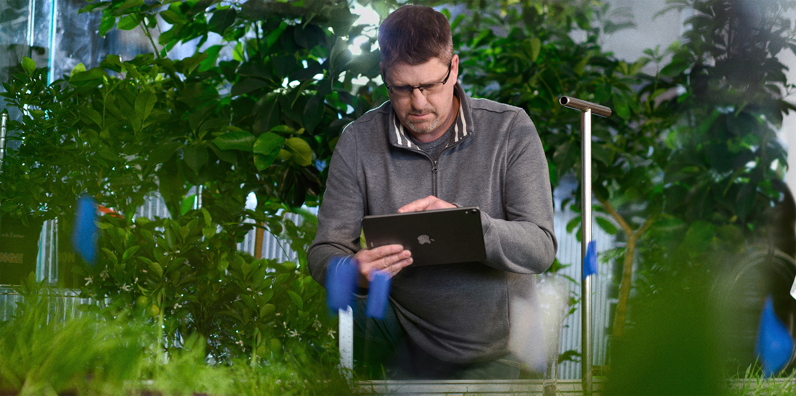iPad Pro. De l’ensemencement à la récolte, Brad Bergsma utilise des apps pour iPad Pro comme Climate FieldView afin d’enregistrer, vérifier et évaluer ses données de recherche – comme le niveau d’irrigation et la nutrition des cultures.