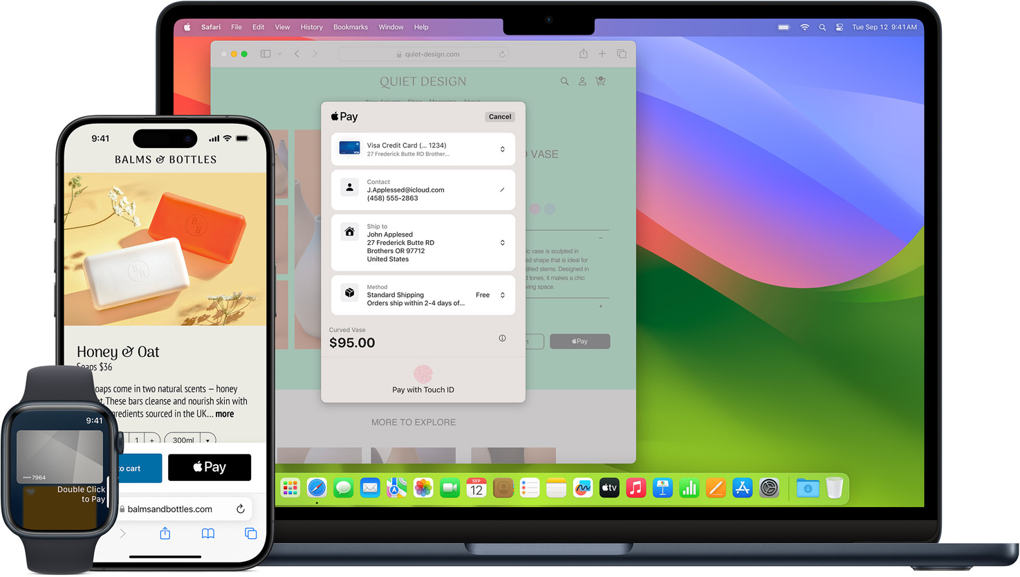 Apple Pay ist bereits auf deinem Gerät. Apple Pay ist in deinem iPhone, Mac, iPad und deiner Apple Watch integriert. Kein kompliziertes Einrichten. Keine separate App zum Laden. Kein Problem.