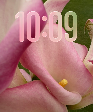 Die Zeit sieht im Liquid Glass Design wunderschön aus und deine Fotos bleiben sichtbar.