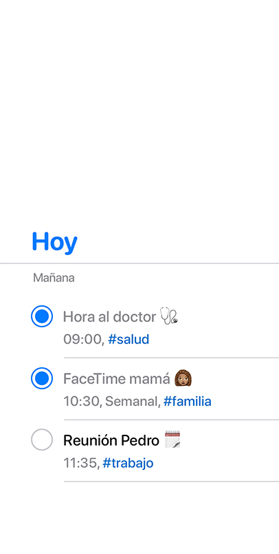 Mantente al tanto de todo, desde tus pendientes hasta las distintas tareas de un proyecto. Crea recordatorios rápidos con Siri y personaliza tus listas y alertas con prácticas herramientas.