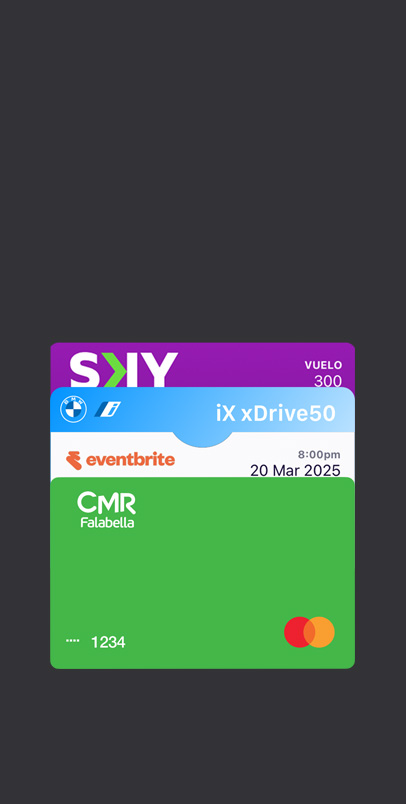 Almacena tus tarjetas de pago, tarjetas de embarque, entradas, llaves de auto y mucho más de forma segura y en un solo lugar.6