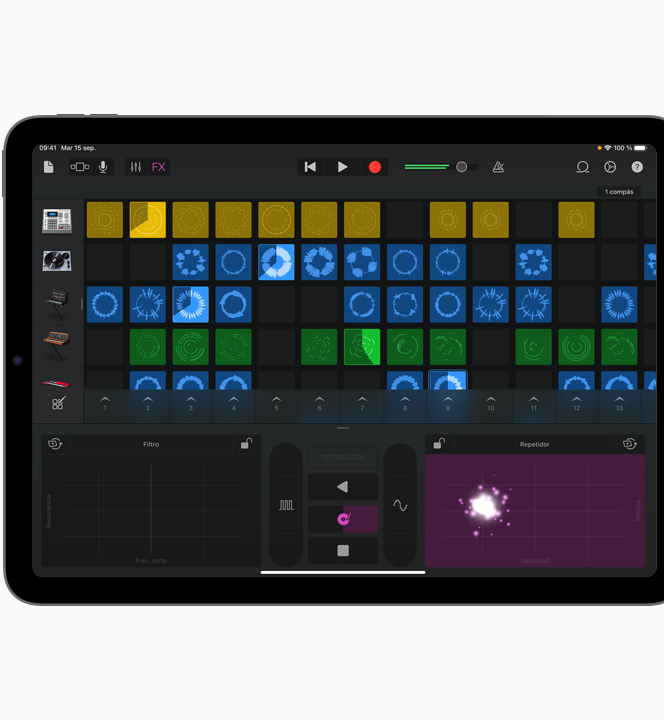 Sácale el jugo a una colección completa de herramientas creativas profesionales que aprovechan al máximo la pantalla táctil, ideales para componer, crear ritmos, editar y mezclar.