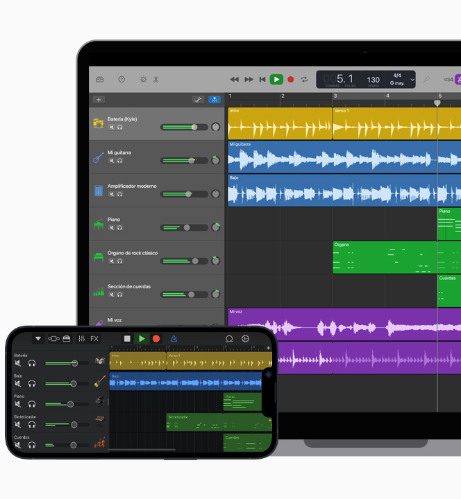 Crea música sin complicaciones con un estudio musical totalmente equipado, una biblioteca de sonidos llena de instrumentos y mucho más.
