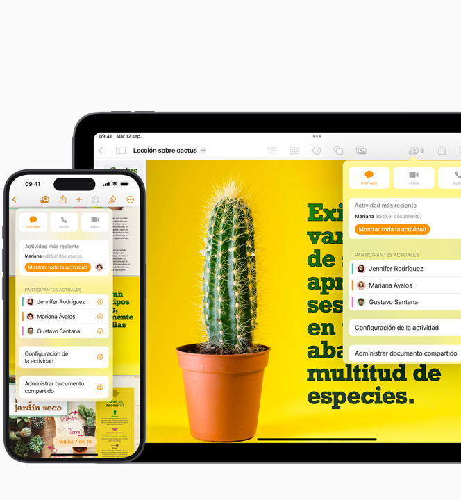 Empieza una tarea en un dispositivo y termínala en otro. Incluso puedes usarlos al mismo tiempo con Cámara de Continuidad, Control Universal y más.
