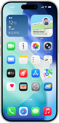 ガラスの光学的特性と、流れるような質感。Liquid Glassは、ロック画面、ホーム画面、コントロールセンター、アプリなどに表現豊かな新しいデザインをもたらします。