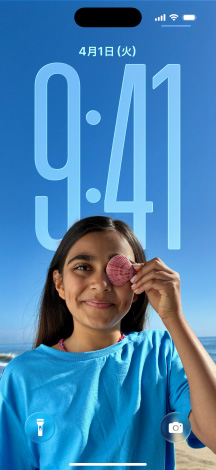 壁紙の写真や通知に合わせて、時刻表示がダイナミックに変化。いつも被写体が見えるようにします。iPhoneを動かすと、新しい3D効果で写真がいきいきと映し出されます6。