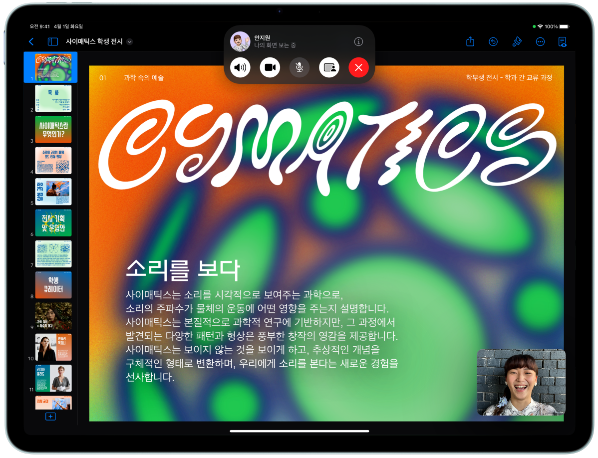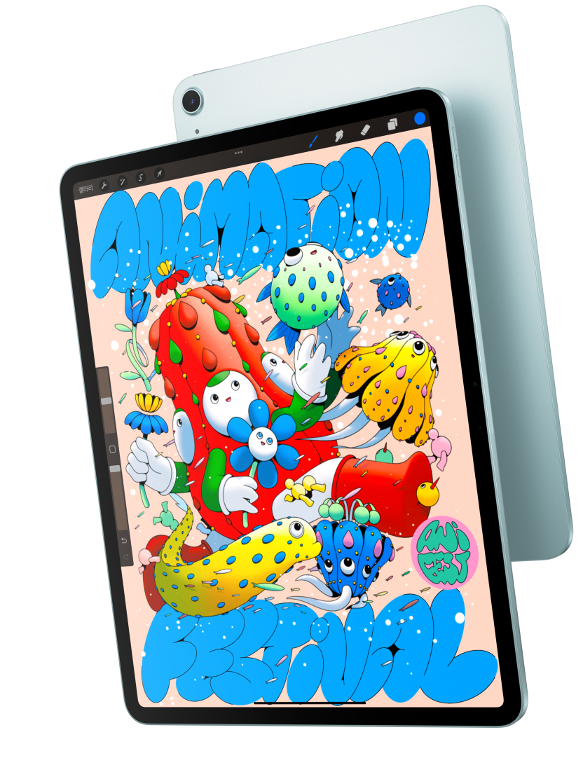 iPad Air를 11 모델 또는 13 모델 중에서 선택할 수 있습니다. 어느 쪽을 택하든 아름다운 고해상도 Liquid Retina 디스플레이가 당신이 즐겨 하는 모든 것에 생생함을 더해주죠. 두 디스플레이 모두 선명한 색감, 뛰어난 반응성 그리고 정확한 색상 처리로 몰입감 넘치는 시각 경험을 선사합니다.