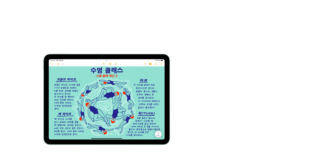 Apple Pencil은 그림을 그리고, 손글씨를 쓰고, 필기를 하는 행위가 어떤 느낌으로 이루어져야 하는지에 대한 기준을 제시합니다. 직관적이고, 정밀하면서도 사뭇 신기롭죠. 픽셀 단위의 정밀함에 극히 짧은 지연 시간, 기울기 감지 기능, 팜리젝션 기능까지 갖췄답니다. Apple Pencil Pro는 여기에 더욱더 많은 기능을 더해 전에 없던 방식으로 당신의 아이디어에 생명을 불어넣을 수 있게 해줍니다.2