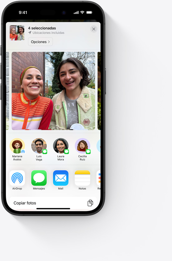 Fototeca Compartida te permite compartir fotos y videos con hasta cinco personas. El contenido compartido de la biblioteca también aparece en Fotos Destacadas y Recuerdos para que revivas tus mejores momentos con las fotos tomadas por los demás.