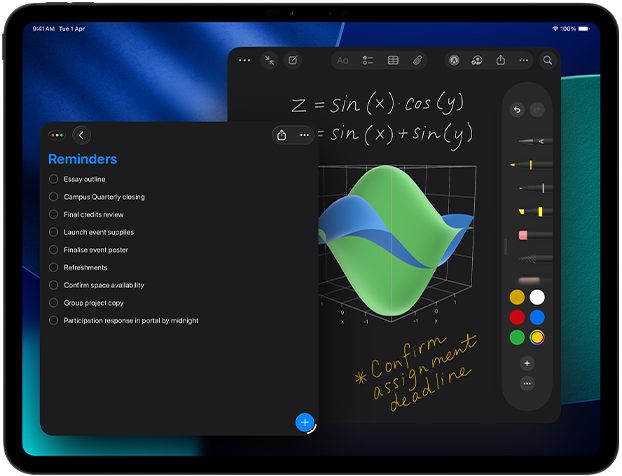 iPadOS 26 introduces a stunning new design with Liquid Glass and game-changing enhancements that put iPad Pro productivity on a new level. A reimagined, intuitive windowing system gives you greater power and flexibility than ever before. Run pro apps, play high-performance games and take on creative projects of any size with an intuitive touch‑first experience.