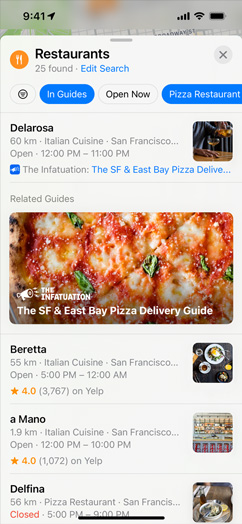• Curated Guides are lists of places created by trusted partners to help you find great places to eat, shop, meet friends or just explore. Maps offers more than 1,000 curated Guides in cities around the world. In iOS 15, tap Explore Guides in Maps to see Guides recommended by Maps editors.