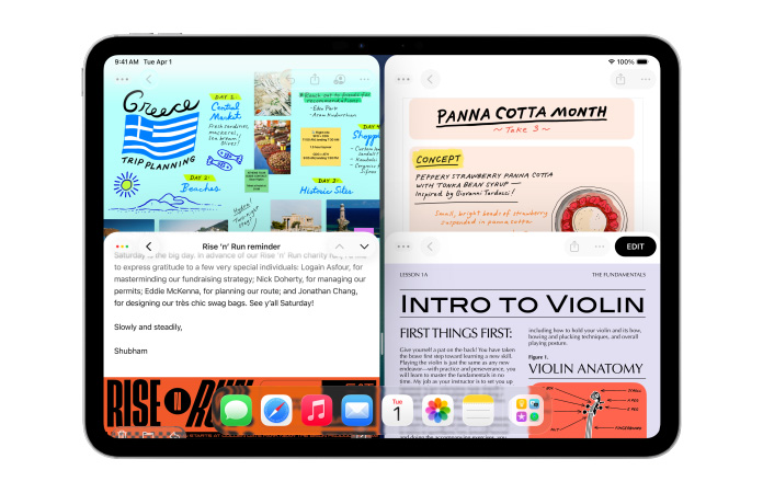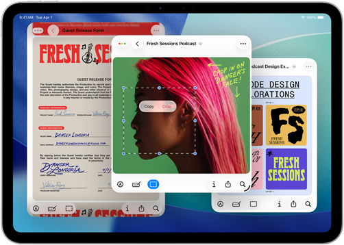 Rangschik vensters met een snelle swipe naar links of rechts. En je kunt je iPad-scherm nu ook in drieën of vieren delen.