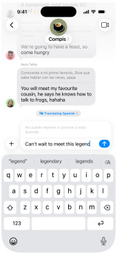 Turn on Live Translation to automatically translate texts in Messages1, display live translated captions in FaceTime and get spoken translations for calls in the Phone app.2