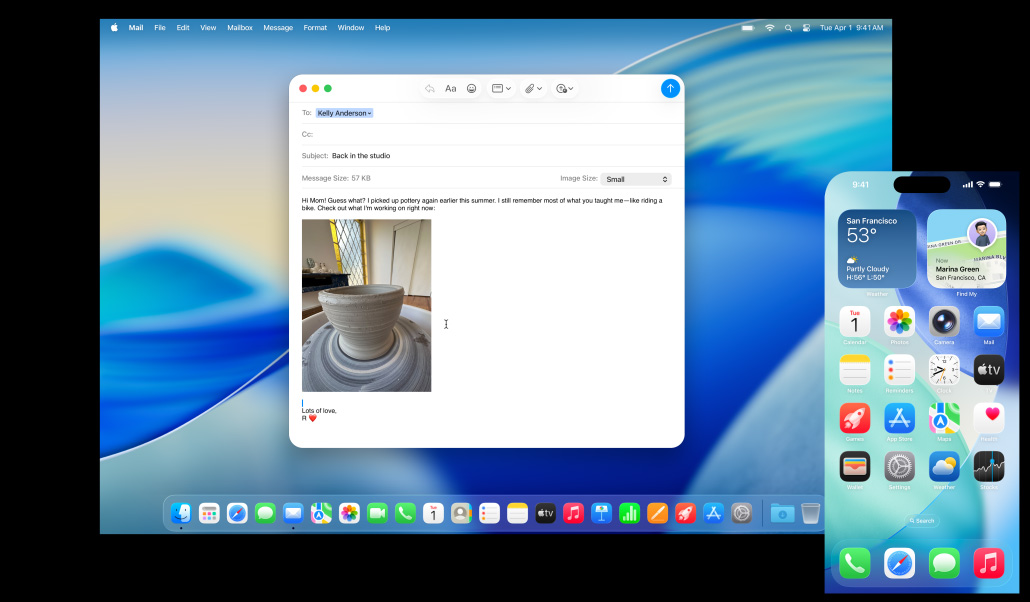 Mac, iPhone, iPad, and Apple Watch are amazing on their own. And they’re even more amazing when used together. Thanks to Continuity, your devices work together seamlessly — unlocking a world of powerful features. Start an email on your Mac and finish it on your iPad. Snap a photo on your iPhone and see it appear on your Mac. Or make a call without reaching for your iPhone.1 That’s the magic of Continuity.