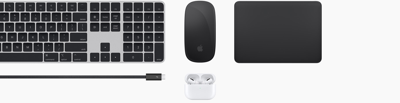 Bezprzewodowe akcesoria Magic przeznaczone do wielokrotnego ładowania są precyzyjne i wygodne. A teraz znajdziesz je także w srebrno-czarnym wariancie, nawiązującym do kolorystyki Studio Display. To czary, które odmienią Twoją pracownię.