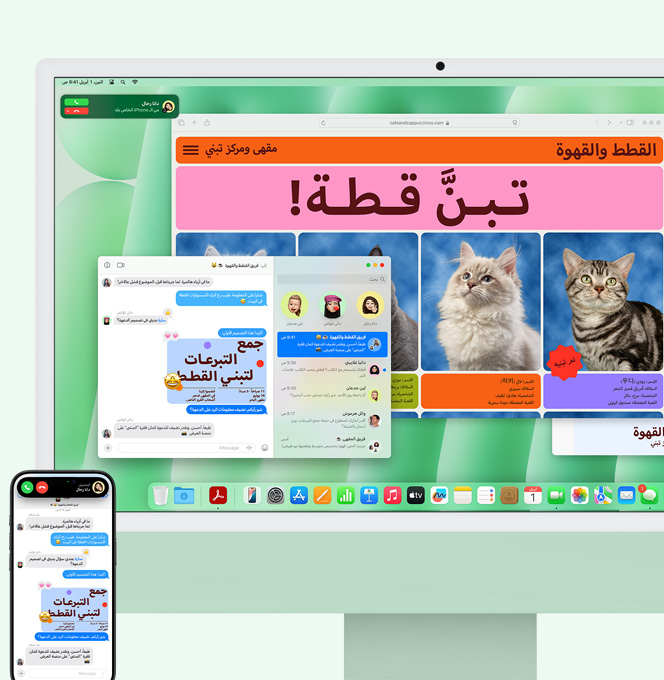 مكالماتك الهاتفية ورسائلك النصية تصلك مباشرة من iPhone إلى Mac. هكذا لن يضيع تركيزك ولا وقتك في التبديل بين الجهازين.7