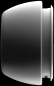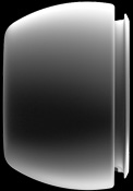Right earbud centered in ring of small noise particles bouncing away from perimeter, animation