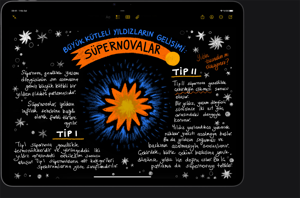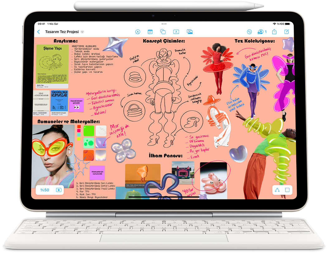 Apple Pencil çizim ve resim yapmanın, elle yazmanın ve not almanın nasıl bir deneyim olması gerektiğiyle ilgili standartları belirliyor. Kullanıcı dostu, hassas ve sihirli. Ayrıca mükemmel piksel hassasiyeti, düşük gecikme süresi ve eğime duyarlılık gibi üstün özelliklere ve temas seçici teknoloji desteğine sahip. Ve Apple Pencil Pro, yaratıcı fikirlerinizi hayata geçirmeniz için eşi benzeri olmayan yetenekler sunuyor.3