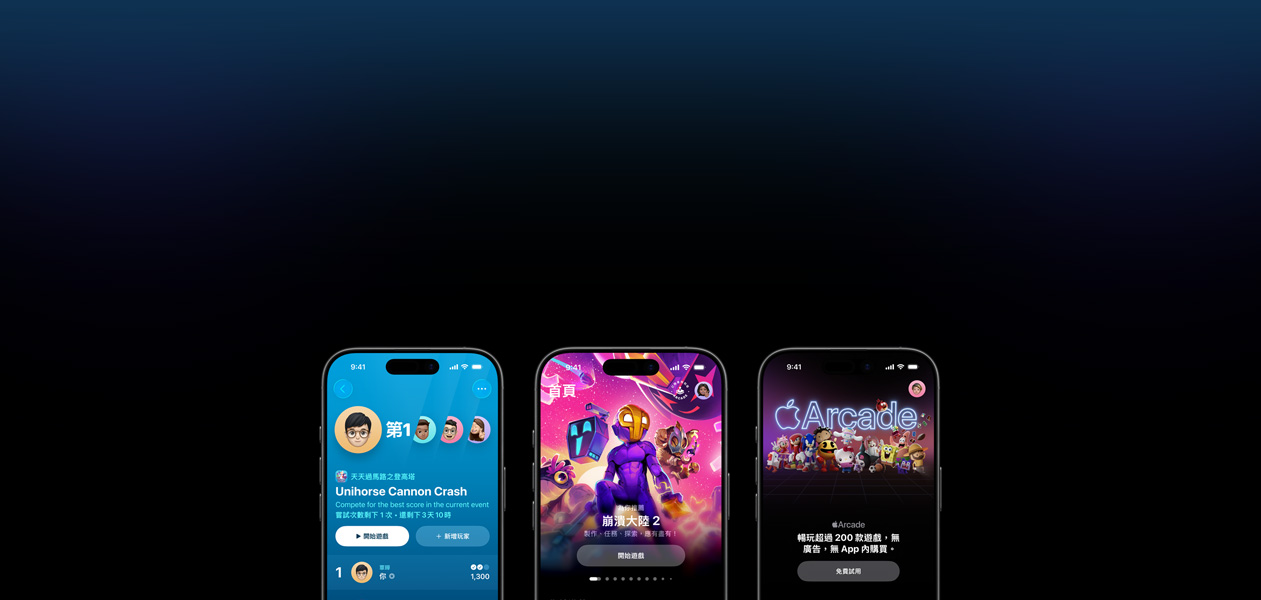 在你的所有 Apple 裝置無限暢玩超過 200 款遊戲,沒有廣告和 app 內購買。訂閱服務,還可與全家共享。