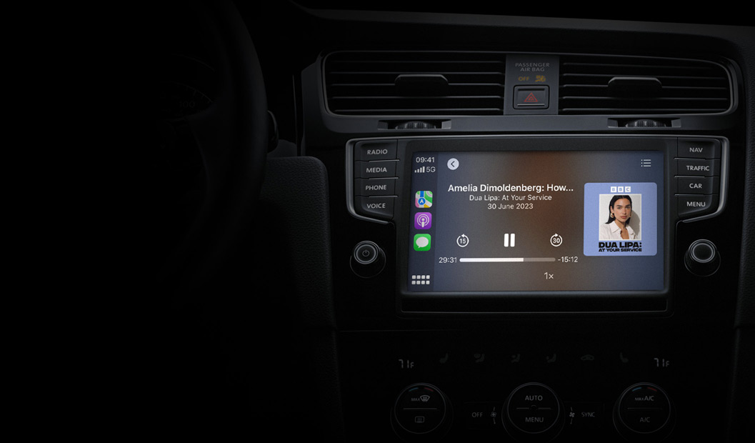 • CarPlay lets you connect your iPhone to your car’s built-in display and is available in over 800 different models. CarPlay makes it easy to access Apple Podcasts on your vehicle’s touchscreen or with Siri. Apple Podcasts also comes pre-installed in selected cars.