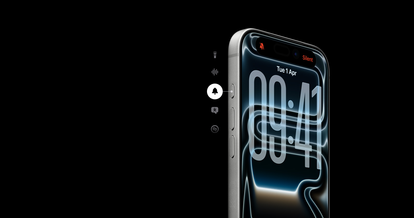 Action button. A customisable fast track to your favourite feature. Long press to launch the action you want — Silent mode, Translation, Shortcuts and more.