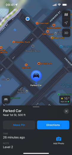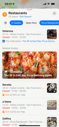 Choose a destination, and its interactive place card shows you everything you need at a glance. See basics like address, opening hours, website and phone number, along with details like price range, photo galleries, associated Guides, accepted payment types — even whether you can take your dog. Launch Flyover or Look Around to get a sense of the location and surroundings. You can even quickly and securely rent a bike, pay for parking, order food and more with just a tap.